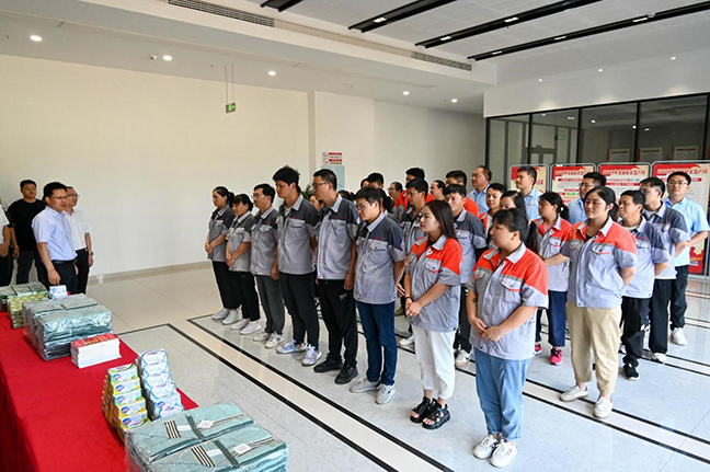 活動中,慰問組實地察看了公司生產(chǎn)車間,詳細(xì)了解公司安全生產(chǎn)、職工勞動保護(hù)及防暑降溫工作情況,并為一線職工送上防暑降溫物資,叮囑他們要增強(qiáng)自我保護(hù)意識,注意勞逸結(jié)合。慰問組要求,國投中科公司要嚴(yán)格落實各項安全防護(hù)措施,科學(xué)合理安排職工作業(yè)、休息時間,營造良好勞動作業(yè)環(huán)境,用心用情關(guān)愛職工。