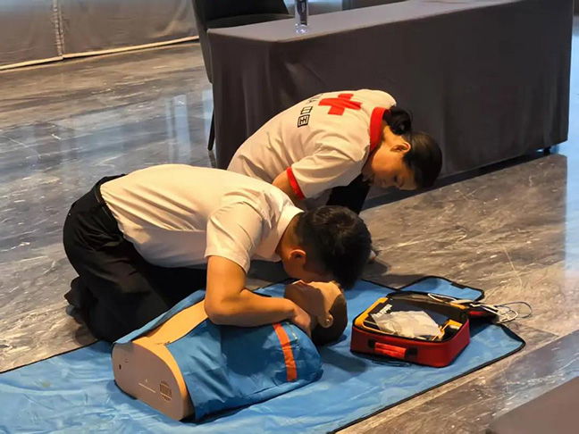 積極探索創(chuàng)新安全管理模式,通過(guò)跨界合作、全員參與,提升安全管理效能。國(guó)投物業(yè)公司與鹽城市亭湖區(qū)紅十字會(huì)攜手,在鹽城先鋒中心項(xiàng)目創(chuàng)新開(kāi)展“消防+急救”雙場(chǎng)景聯(lián)動(dòng)演練?;顒?dòng)特邀紅十字會(huì)專(zhuān)家現(xiàn)場(chǎng)授課,圍繞心肺復(fù)蘇(CPR)、AED 使用、海姆立克急救法等急救技能展開(kāi)詳細(xì)講解與實(shí)操指導(dǎo)。