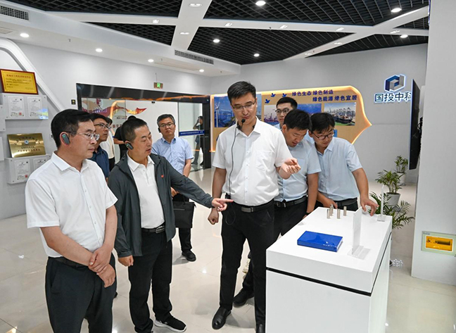 調(diào)研組一行在企業(yè)展示廳,仔細(xì)聽取公司發(fā)展歷程、企業(yè)文化、技術(shù)創(chuàng)新、產(chǎn)品定位、市場布局等方面的介紹,深入了解公司的生產(chǎn)工藝和相關(guān)產(chǎn)品,并高度評價(jià)公司堅(jiān)持綠色發(fā)展理念、自主研發(fā)創(chuàng)新,在軍工、港口、軌道、新能源儲(chǔ)能細(xì)分領(lǐng)域精耕細(xì)作的系列舉措。調(diào)研組表示,通過此次實(shí)地調(diào)研,對國投中科公司新能源產(chǎn)業(yè)發(fā)展有了更直觀地了解,希望鹽城和阜新兩地進(jìn)一步加強(qiáng)優(yōu)秀企業(yè)之間的交流,互學(xué)互鑒、深化合作。