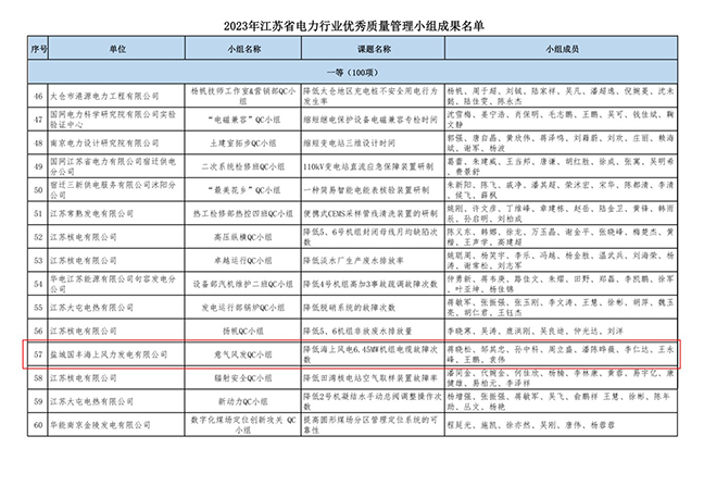 日前,在江蘇省電力行業(yè)協(xié)會主辦的2023年度QC成果發(fā)布會上,鹽城國豐公司QC小組“降低海上風電6.45MW機組電纜故障次數(shù)”這一課題,經(jīng)過資料評審、現(xiàn)場發(fā)布等多個環(huán)節(jié),榮獲成果一等獎。