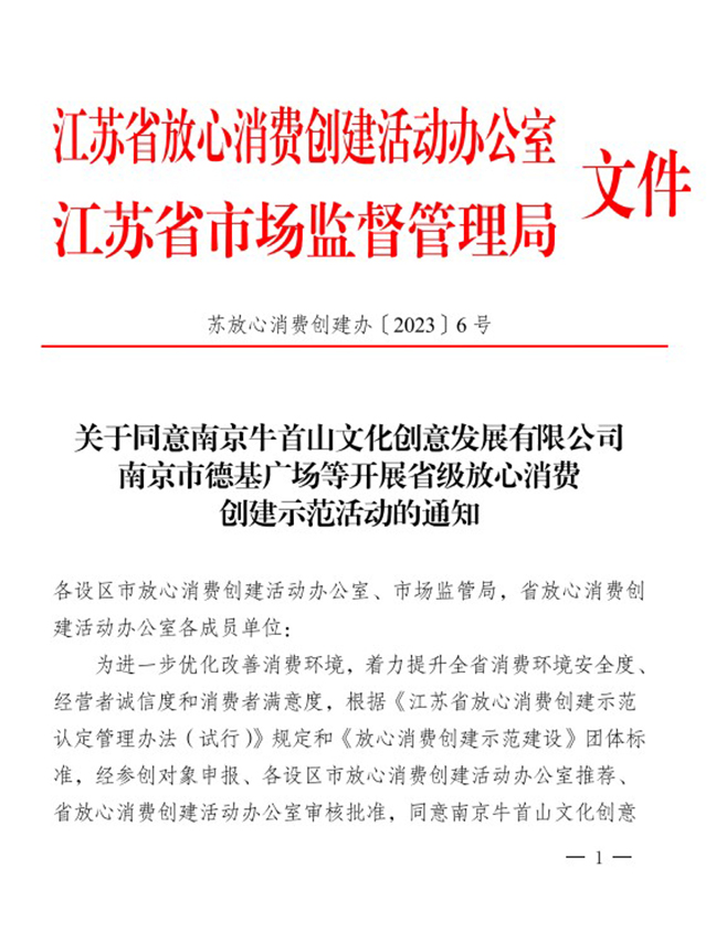 日前,江蘇省放心消費(fèi)創(chuàng)建活動(dòng)辦公室、江蘇省市場(chǎng)監(jiān)管局發(fā)布了2023年度江蘇省級(jí)放心消費(fèi)創(chuàng)建示范單位、示范區(qū)域參創(chuàng)名單,集團(tuán)先鋒國(guó)際廣場(chǎng)成功入選了省級(jí)放心消費(fèi)創(chuàng)建示范區(qū)域參創(chuàng)名單。