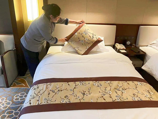 鹽城迎賓館深入挖掘市場(chǎng)潛力,提前擬定接待服務(wù)方案,強(qiáng)化安全防范措施落實(shí)。酒店領(lǐng)導(dǎo)班子深入開(kāi)展安全管理及衛(wèi)生服務(wù)大檢查工作,要求各部門、各崗點(diǎn)加強(qiáng)值班值守,并針對(duì)假期婚喜宴多的特點(diǎn),安排安保人員全程跟蹤宴會(huì)廳桁架、T臺(tái)搭建,確保布景扎實(shí)穩(wěn)固。酒店為跨年賓客提供房間個(gè)性化布置,并反復(fù)打磨接待流程和服務(wù)細(xì)節(jié),對(duì)食材的采購(gòu)、儲(chǔ)存、加工等環(huán)節(jié)進(jìn)行嚴(yán)格把關(guān),優(yōu)化了菜單菜系,以地道的“鹽城味”、家鄉(xiāng)味滿足消費(fèi)者的美食體驗(yàn)。國(guó)投大酒店以“生肖龍、中國(guó)結(jié)、福字”等傳統(tǒng)元素精心布置整體環(huán)境,營(yíng)造歡樂(lè)喜慶的節(jié)日氛圍,用熱情周到、體貼入微的服務(wù),為賓客打造舒適愉悅的食宿體驗(yàn)。酒店廚師團(tuán)隊(duì)從“地方特色”切入,用心鉆研、反復(fù)推敲,推出“家的味道”主題跨年套餐活動(dòng),以美食為媒介,傳遞愛(ài)與團(tuán)圓。店內(nèi)同步推出三款極具鹽城特色的年貨大禮包,搭配豐富、匠心獨(dú)運(yùn),滿足賓客多樣化消費(fèi)需求。鹽城萬(wàn)豪酒店精心布置公共區(qū)域環(huán)境,大力營(yíng)造節(jié)日氛圍,積極創(chuàng)新產(chǎn)品、提升服務(wù)品質(zhì),推出了“新歲閃購(gòu)”活動(dòng),“鹽城廚房西餐廳、萬(wàn)豪中餐廳、霧山特色餐廳、大堂吧”的各類套餐吸引眾多食客到店品嘗,工作人員專業(yè)的素養(yǎng)和細(xì)心的服務(wù)贏得賓客一致好評(píng)。