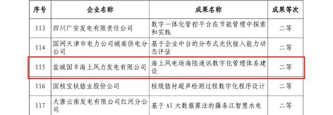 近日,中國水利電力質(zhì)量管理協(xié)會發(fā)布《關(guān)于公布2025年水利電力行業(yè)數(shù)字化質(zhì)量創(chuàng)新成果交流活動評價結(jié)果的通知》,集團能源板塊國能公司《數(shù)字化賦能的“5A級”海上風電場全生命周期質(zhì)量管理策略與創(chuàng)新實踐》、國豐公司《海上風電場海陸通訊數(shù)字化管理體系建設》兩項創(chuàng)新成果脫穎而出,分別榮獲一等獎與二等獎。