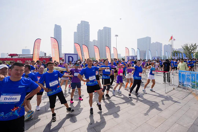 早上8點(diǎn),鹽城國(guó)貿(mào)中心(先鋒中心)廣場(chǎng)已人聲鼎沸。參賽選手們陸續(xù)從四面八方齊聚于此,大家身著統(tǒng)一藍(lán)色賽事T恤,跟隨暖場(chǎng)音樂(lè)進(jìn)行熱身,現(xiàn)場(chǎng)化成歡樂(lè)的藍(lán)色海洋。“報(bào)名參加垂直登高賽后我一直在家里練習(xí)爬樓梯,雖然是第一次參加城市級(jí)垂直登高賽,但運(yùn)動(dòng)都是相通的,我一定能取得好名次。”喜歡跑馬拉松的成先生信心十足。