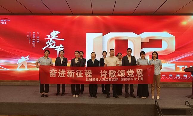 為慶祝中國(guó)共產(chǎn)黨成立102周年,弘揚(yáng)偉大建黨精神,抒發(fā)愛黨愛國(guó)情懷,6月29日下午,鹽城國(guó)投大酒店黨支部聯(lián)合國(guó)投中科黨支部以“奮進(jìn)新征程 詩(shī)歌頌黨恩”為主題,開展了慶“七一”紅色經(jīng)典誦讀活動(dòng)。